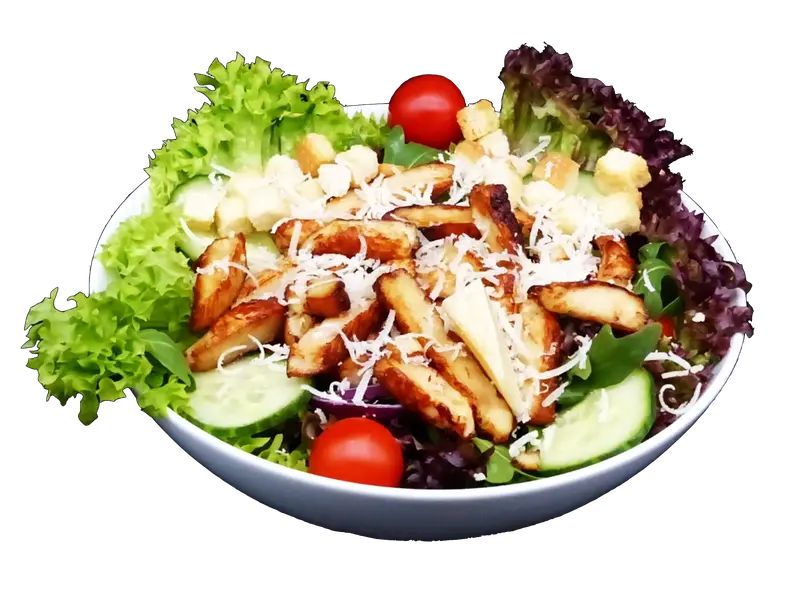 Gem. Salat mit Hühnerbruststreifen, Croutons, Parmesan